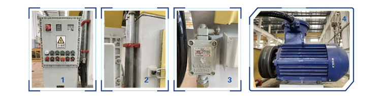 5、履带翻转减速机电机升级为高效率隔爆型三项异步电机,防爆标志Exdll BT4 Gb;提升减速机电机升级为高效率隔爆型三项异步电机,防爆标志Exdll BT4 Gb;风机电机升级为高效率隔爆型三项异步电机,防爆标志ExdIl BT4 Gb;